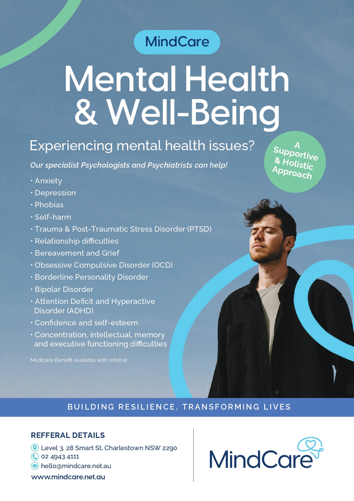 At Mind-Care, we believe that mental health is foundational to your overall well-being. Located in the heart of Newcastle and Charlestown, we offer specialised psychological services to support individuals navigating a wide range of mental health conditions.